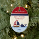 Personalise your custom Ahoy Mate Boy Nautical Whale Boat Ornament with your families name and the year! Perfect Christmas gift for any family member or friend!