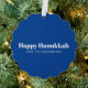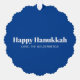 Happy Hanukkah blue and white modern typography simple minimalist personalised Hanukkah ornament card.