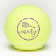 Personalised tennis balls printed with a purple custom name or text in a feminine girly and modern pretty script font and simple tennis racquet monogram with a circle border around it. Any women's tennis player would appreciate the elegant look on these modern monogrammed practice balls.