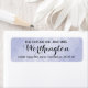 This simple but elegant return address labels says The Future Mr. and Mrs with the name is a calligraphy style font. The background is lavender purple with a damask watermark. Give your engagement, save the date, wedding or thank you cards a personal touch with these address labels.