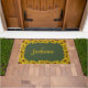 Cheerful and brightly coloured sunflowers border the outer edge of this door mat. The background colour (shows as green) can be changed to any colour you prefer - the font style size and colour can also be changed to suit.