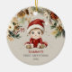 Add a touch of festive cheer to your holiday decor with this charming Christmas ornament featuring a cute, illustrated baby for baby's first Christmas. Perfect for adding a whimsical touch to your tree, this ornament showcases delightful artwork that captures the spirit of the season. It's customisable and editable for a personal touch and makes a memorable gift for loved ones. Celebrate the holidays with style and joy with this adorable ornament!