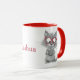 Enjoy your favourite hot drink in style with this adorable mug featuring a fluffy cat in red glasses reading a little book. With space to add a name or custom message, this fun mug makes a thoughtful gift for teachers, book lovers, students, or cat fans. The red handle and interior add a bold, cheerful touch — perfect for brightening up any coffee break or desk!
