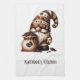 Adorable cute and whimsical coffee gnome on this personalised Kitchen Towel. Perfect for Bridal Showers, Housewarming gifts, or just to spruce up your kitchen!