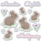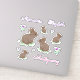 Enjoy these cute stickers featuring realistically painted bunnies with pink noses sitting in a patch of clover, little purple and yellow white pansy flowers along with purple and pink script text templates for your full name or phrase.