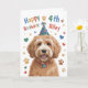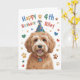 This cute 4th birthday dog birthday card includes a cute Goldendoodle dog in a birthday hat graphic. On the front, you can personalise by adding the name of the person receiving this birthday card. You can change the year if you would like (for example, instead of "3rd" birthday it could say "2nd" birthday). The funny yet cute message on the inside of this card says "Hope your birthday is paws-itively amazing!". Enjoy this Goldendoodle puppy birthday card!
