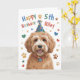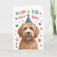 This cute 5th birthday dog birthday card includes a cute Goldendoodle dog in a birthday hat graphic. On the front, you can personalise by adding the name of the person receiving this birthday card. You can change the year if you would like (for example, instead of "3rd" birthday it could say "2nd" birthday). The funny yet cute message on the inside of this card says "Hope your birthday is paws-itively amazing!". Enjoy this Goldendoodle puppy birthday card!