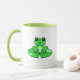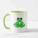 Add a name to this cute cartoon frog on a lily pad coffee mug. This makes a cute gift for someone who loves frogs!