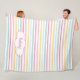 A cute and modern personalised colourful striped girls blanket. Back of blanket has a blue and white cloud pattern. Perfect gift for a girl. Designed for you by Blackberry Boulevard.