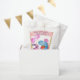 Celebrate her 3rd birthday with this cute baby dino wearing a pink crown and carrying a gift.