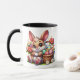 Cute Easter Bunny sitting next to a basket full of dyed Easter Eggs cartoon rabbit. This mug says Auntie but you can personalise to say any name or family member.