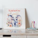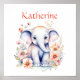 Baby nursery room art with a cute watercolor elephant surrounded by pink and coral flowers. Add name in the personalise area.