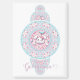 Bring charm and personality to your space with the Personalised Cute Kawaii Bunny Ornamental Mandala Magnet. This delightful magnet features a circular motif centred around an adorable bunny with soft white fur, floppy ears, and a pink bow. The bunny is surrounded by a pastel pink background adorned with candy-like details and fluffy clouds, creating a playful and whimsical vibe. The intricate mandala-style borders, highlighted with bead-like and paisley-inspired patterns in turquoise, pink, and white, add a decorative and balanced touch to this fun design.