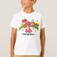 Cute kids dinosaur Birthday gift party favours showing a cute pink and purple dinosaur holding red yellow and blue balloons and a birthday cake with a rainbow and multic coloured stars in the background. Great birthday gift for the kid who loves dinosaurs original Dinosaur graphic under license from the graphics factory