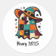 Personalised Cute Patchwork Ghost Halloween Classic Round Sticker