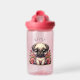 Cute chibi cartoon cosy little pug puppy dog sitting in pink flowers with a name that you can add in the personalise area.