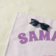 Keep your cool at the beach or the pool with this super cute personalised beach towel featuring a rainbow coloured extra tall ice cream cone with cute bear shaped ice cream scoops. Easily personalise the purple text with that special someone's name using the template field. This fun beach towel makes a great gift for fans of squishy food toys. Find coordinating products in the Cute Enough to Eat collection from Asterisk Designs.