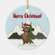 Personalised Cute Santa Deer and Mountains Merry Christmas Holiday Ornament.