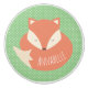 Cute personalised gifts with cute sleeping fox design and green polka dot background.
