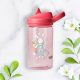 This product design features illustrations of a stuffed bunny, carrot, and pink heart. With its colourful graphics, it makes a cute and unique water bottle for girls along with personalised text.