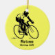 Cyclist Ornament Christmas 20XX. All text customisable, front and back! To change background colour: select customise, edit and background.