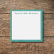 This small square 3x3 sticky notepad can be personalised with a name or message. It is for a reminder list, but can be used for any custom notes. It has a simple clean design with a textured turquoise border.