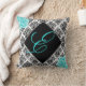 Customisable Aqua and Black Damask Nursery Accent Pillow - Created by Colourful Designs Inc. Copyright 2012. BE SURE TO CLICK CUSTOMIZE IT in order to move your monogram initial to the proper spot. Pillow will print as seen on screen.