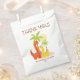 This cute dinosaur party favour bag is perfect for toddler or kids’ birthday celebrations! Featuring two colourful dinosaurs under palm trees with a bold “Thank You” message, this bag can be customised with your child’s name and party text. Great for handing out treats, small toys, or candy to guests. Ideal for dinosaur-themed parties for boys and girls.