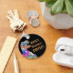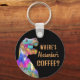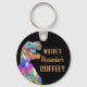 If you are T-Rex if you haven’t had your morning coffee then this is the keyring for you. Just add a name to personalise and you have the perfect prehistoric dinosaur keyring for the caffeine deprived. A funny painting of a grumpy, prehistoric Jurassic era Tyrannosaurus Rex dinosaur in psychedelic orange, yellow, pink, purple, blue and aqua green hues on a black background. The slogan template 'where's Alexander’s coffee' is easy to customise by adding a name. Original dino artwork by artist Catherine Sweetman