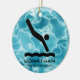Diver'sPersonalized Ornament Christmas 20XX. A diver in motion against a wavy, aqua-blue water background. All text customisable, front and back!