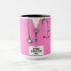 Creative doctor appreciation, birthday, graduation or holiday gift mug featuring pink hospital scrubs and funny Swiss Army knife. To personalise edit text to add name.