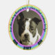 I was looking for an ornament for our dog, who we had to put down in April. I found it on Zazzle! Not too big, and her photo is very clear. I would recommend it if you are looking to remember an old pet this time of year. Not quite centered..