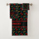 Fun, personalised DOG PAW PRINTS and LOVE HEARTS Bath Towel set with CUSTOMIZABLE TEXT, designed for your fur baby baths or for dog moms/dads. The design shows bright colourful paw prints with colourful hearts in a repeating pattern against a BLACK background. This background colour can be changed by clicking Edit Design and using the Zazzle Design Tool. This personalised paws and hearts Bath Towel Set would make an ideal Christmas or National Dog Week gift for pet bath times with a dog mum and dog dad or for a fur baby household.