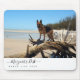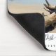 Gorgeous Personalised Dog Photo Mouse Pad. Modern airy design by Simon & Grace. Personalise with your own photo and text. Excellent gift or great item to brighten up your own desk. Sample photo features a beautiful purebred German Shepard dog on driftwood tree at the beach. Sample text is shown in black on white.