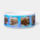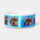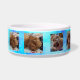Blue and White Abstract Art pour painting fluid art modern dog bowl with your pet's name and photos on it.
