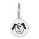 Personalised dog tag with cute cartoon design. Personalised name pet tag for lost doggy. Customisable coloured label with pet name and phone number. Simple way to retrieve your animal pet.