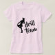 A drill team girl strikes a classic pose in a pique with the words "drill team" to the right in a pretty script font. Customise the back of the shirt to say your name, team, rank or anything else!