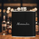 Personalised drink flask with elegant script text. Customisable black background colour. Cute gift idea for manly men. Personalise it with a name or monogram initials. Alcohol / Drinking present that you can customise.