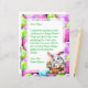 Add your child's name to this customisable letter from the Easter Bunny. Cute vintage Easter bunny in a basket with a cute Easter Eggs background. Back side of this letter is a colouring page for your child.