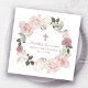 Elegant and feminine First Communion napkin features a beautiful pink rose wreath that surrounds your First Holy Communion details. The roses and leaves have glitter details to add a touch of sparkle. All of the text is editable so you can also use it for any type of religious ceremony, Baptism, Christening, Dedication or Confirmation. This item is part of the First Communion Barely Blush Rose collection. It contains professional templates for invitations, welcome signs, party supplies and decorations. You can quickly create personalised party decor, so you spend more time enjoying your even and less time planning it.