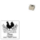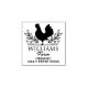 This "Egg Stamp" rubber stamp features a chicken with custom name and slogan.