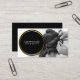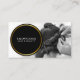 Make a memorable impression with this personalised black and white photo adorned with black and gold circle frame business card, designed for hairstylists and beauticians. Showcase your unique style and expertise with a striking black and white photo, elegantly displayed on this modern card.