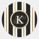 Personalised Elegant Black & Gold Stripes Monogram Classic Round Sticker