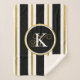 Personalised Elegant Black & Gold Stripes Monogram Sherpa Blanket