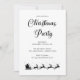 Celebrate the holidays in style with this personalised elegant black & white Christmas party invitation! Featuring a festive Santa Claus riding a sleigh vector element design in black and a Christmas party phrase script in black accent, this invitation is sure to impress your guests. The personalised black accent Christmas party detail adds a touch of sophistication, while the white background design creates a classic and timeless look.