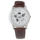 The watch looks really great! Very sharp and well done. The leather band is really nice, though for a man's watch I think it should be longer. Unfortunately, it isn't big enough for my husband's wrist but I will get a replacement because he is very excited to wear it!