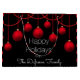 Add a personal touch to your gift giving with a personalised gift bag. Bright red baubles against black with the message, "Happy Holidays" Just add your family's name.