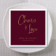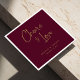 Add a touch of luxury and sophistication to your wedding reception with our personalised elegant gold hand lettering wedding napkins. These napkins feature a beautiful gold hand-lettered "cheers to love" phrase, as well as your names and wedding date. The burgundy background design is perfect for a variety of wedding themes, and the napkins are suitable for a variety of occasions, including bridal showers, engagements, and other special events.