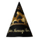Introducing our exquisite Black and Gold Party Hat, designed to add a touch of sophistication to your special event. The sleek black background sets the stage for the shimmering gold accents that exude elegance and style. Personalise this party hats by entering your own message. This invitation is perfect for formal gatherings, whether it be a corporate event, a milestone celebration, or an intimate soirée with friends.