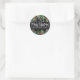 Celebrate the season with this cosy round Christmas sticker featuring a bold black and grey buffalo plaid background. In the centre, “Merry Christmas” is written in a mix of classic serif and script fonts, with your family name displayed just below.